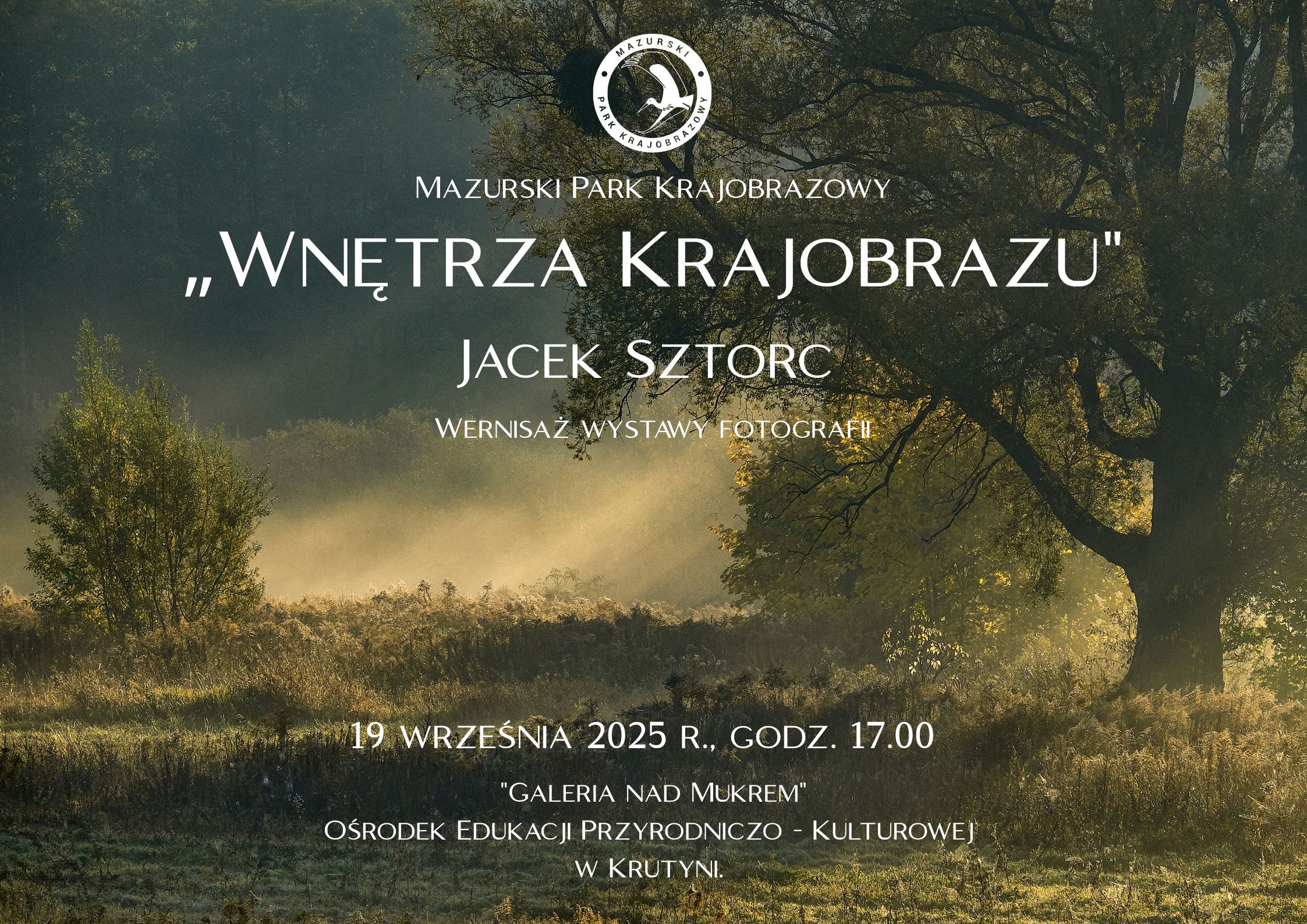 Mazurski Park Krajobrazowy serdecznie zaprasza na wernisaż wystawy fotograficznej Jacka Sztorca pt. „Wnętrza Krajobrazu”, który odbędzie się w Galerii ,, Nad Mukrem” w Ośrodku Edukacji Przyrodniczo – Kulturowej w Krutyni 19 września o godz. 17.00.